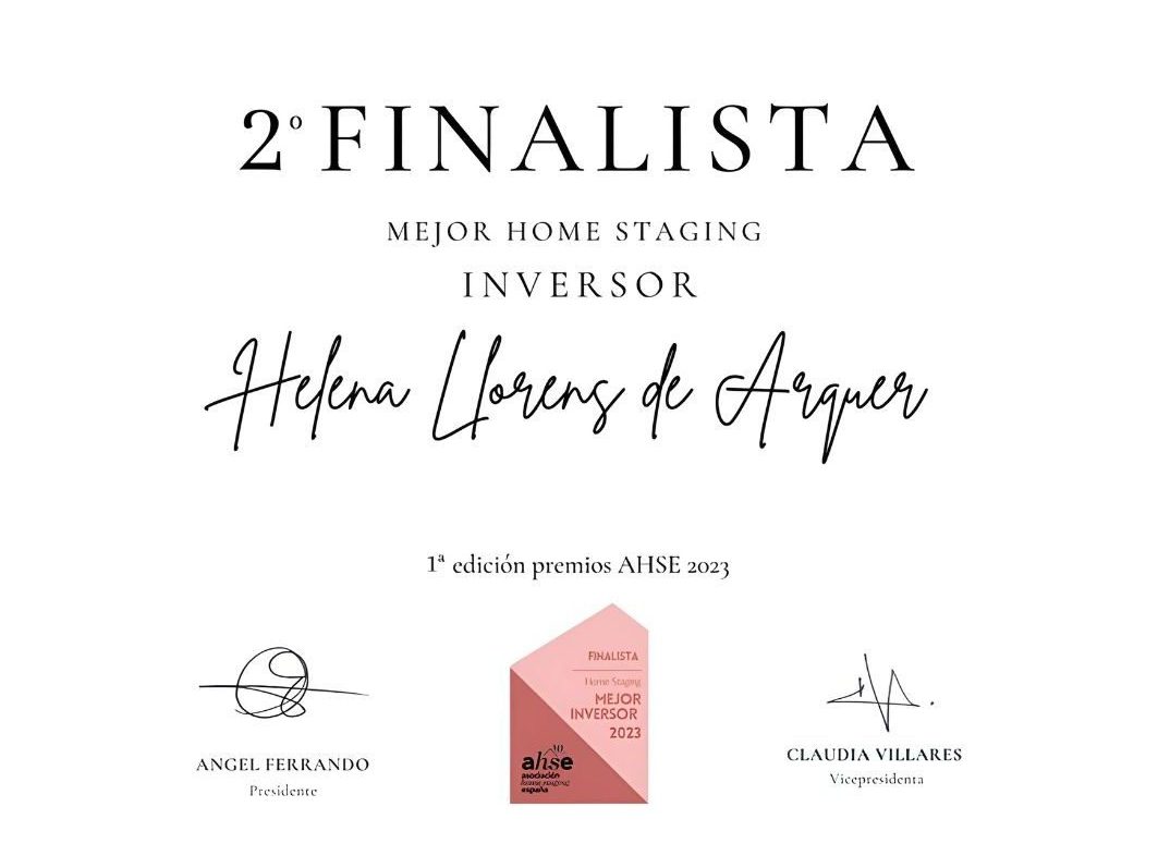 La misma AHSE extendió un mensaje de gratitud a Helena, indicando: “Queremos agradecerte tu participación en la primera edición de los Premios AHSE 2023. Nos complace comunicarte que has sido galardonada como 2ª Finalista al Mejor Proyecto de Home Staging en la categoría Home Staging para Inversor 2023”. La insignia digital otorgada refleja el reconocimiento por parte de la Asociación y avala la dedicación y el talento que Helena aporta a cada proyecto.